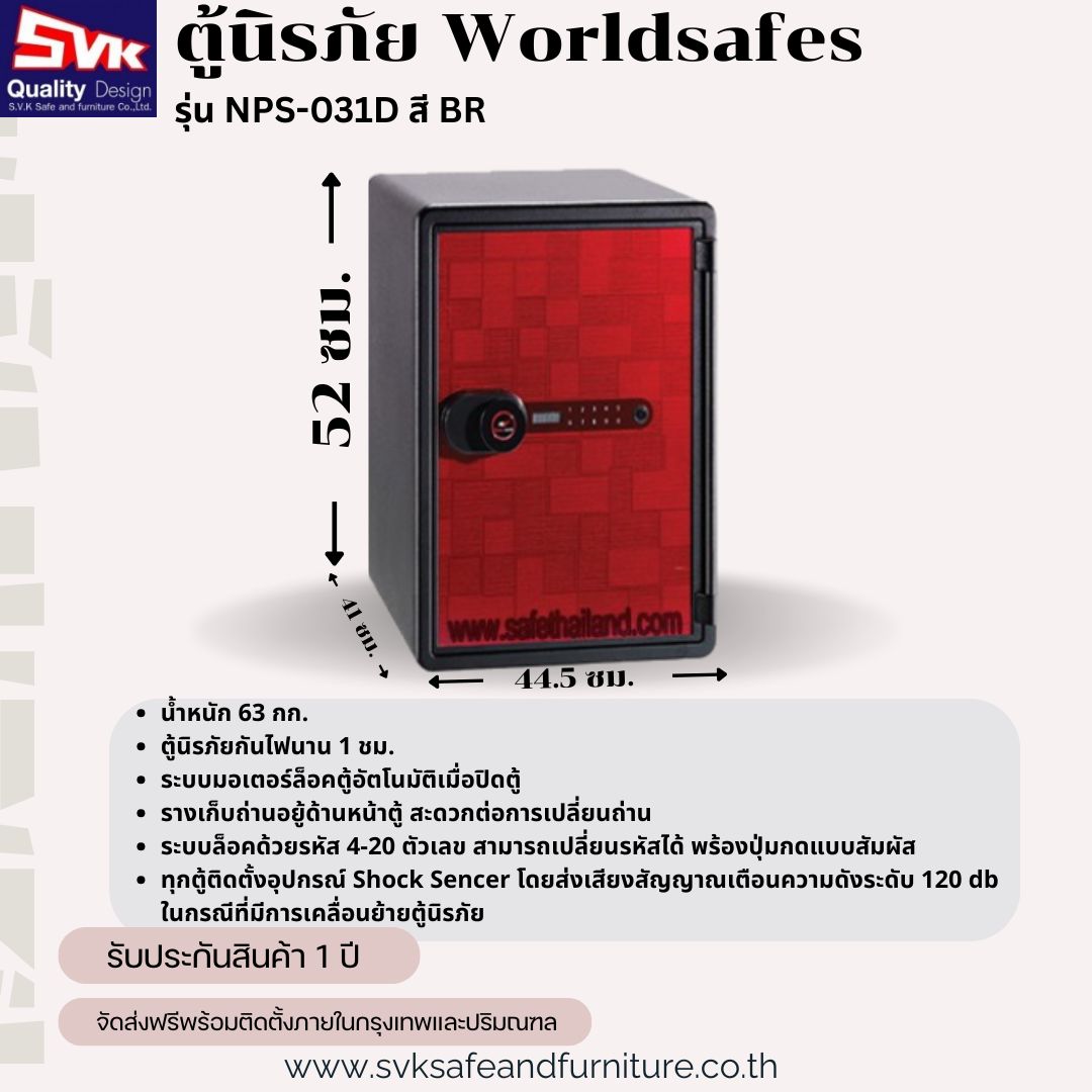 • ทุกตู้ติดตั้งอุปกรณ์ Shock Sencer โดยส่งเสียงสัญญาณเตือนความดังระดับ 120 db ในกรณีที่มีการเคลื่อนย้ายตู้นิรภัย