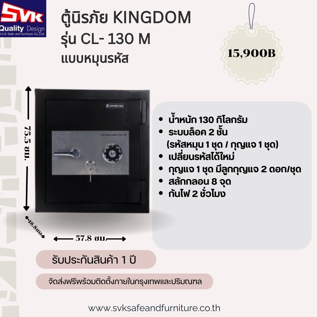 - ระบบล็อค 2 ชั้น (รหัสหมุน 1 ชุด / กุญแจ 1 ชุด)
