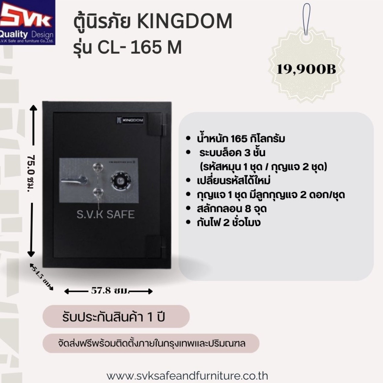 - ระบบล็อค 3 ชั้น (รหัสหมุน 1 ชุด / กุญแจ 2 ชุด)